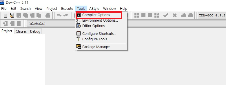 Compiler Options에서 Add the following commands when calling the compiler를 체크하고 -std=c99를 입력한다.